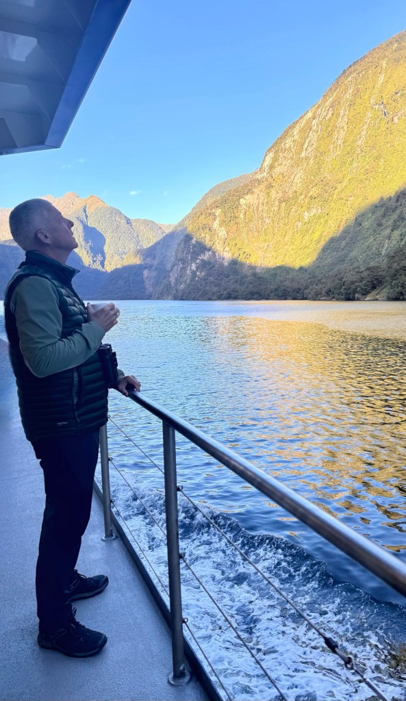 Day 21 – Doubtful Sound Overnight Cruise. Before I tell you why this was one of the most magical experiences ever, let me say this. Two fjords offer this experience: Milford Sound and Doubtful Sound. Milford Sound is easier to access and receives around 7,000 visitors a day. Doubtful Sound is more difficult to reach and has approximately 100–200 visitors daily. Since I don’t like crowds, this was a clear choice.