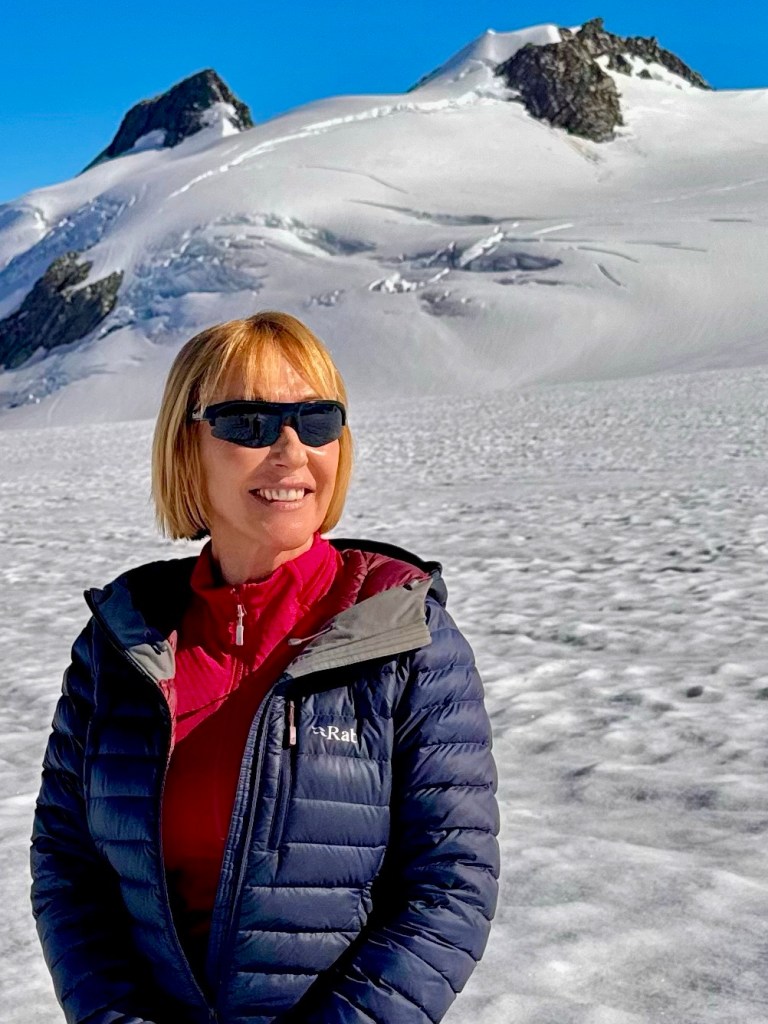 Sitting in the front of the helicopter with the pilot, the flight was thrilling, climbing dramatically into the rugged Southern Alps. The views are jaw-dropping, endless ice fields, deep blue crevasses, towering seracs, and surrounding snow-capped peaks—creating a surreal, otherworldly sensation as the massive glacier unfolds below like a frozen river carving through mountains.